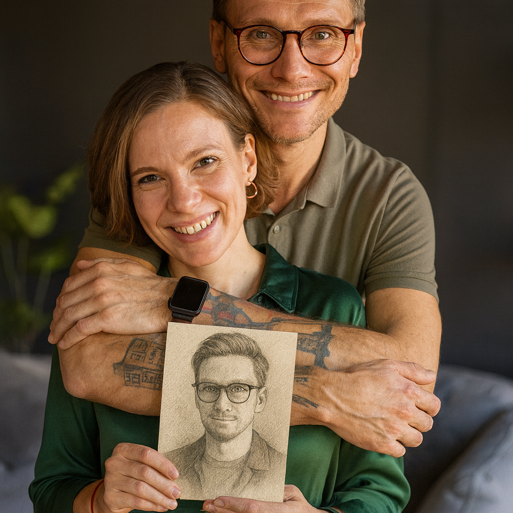 • Persönliches, handgezeichnetes Portrait ihres zukünftigen Partners